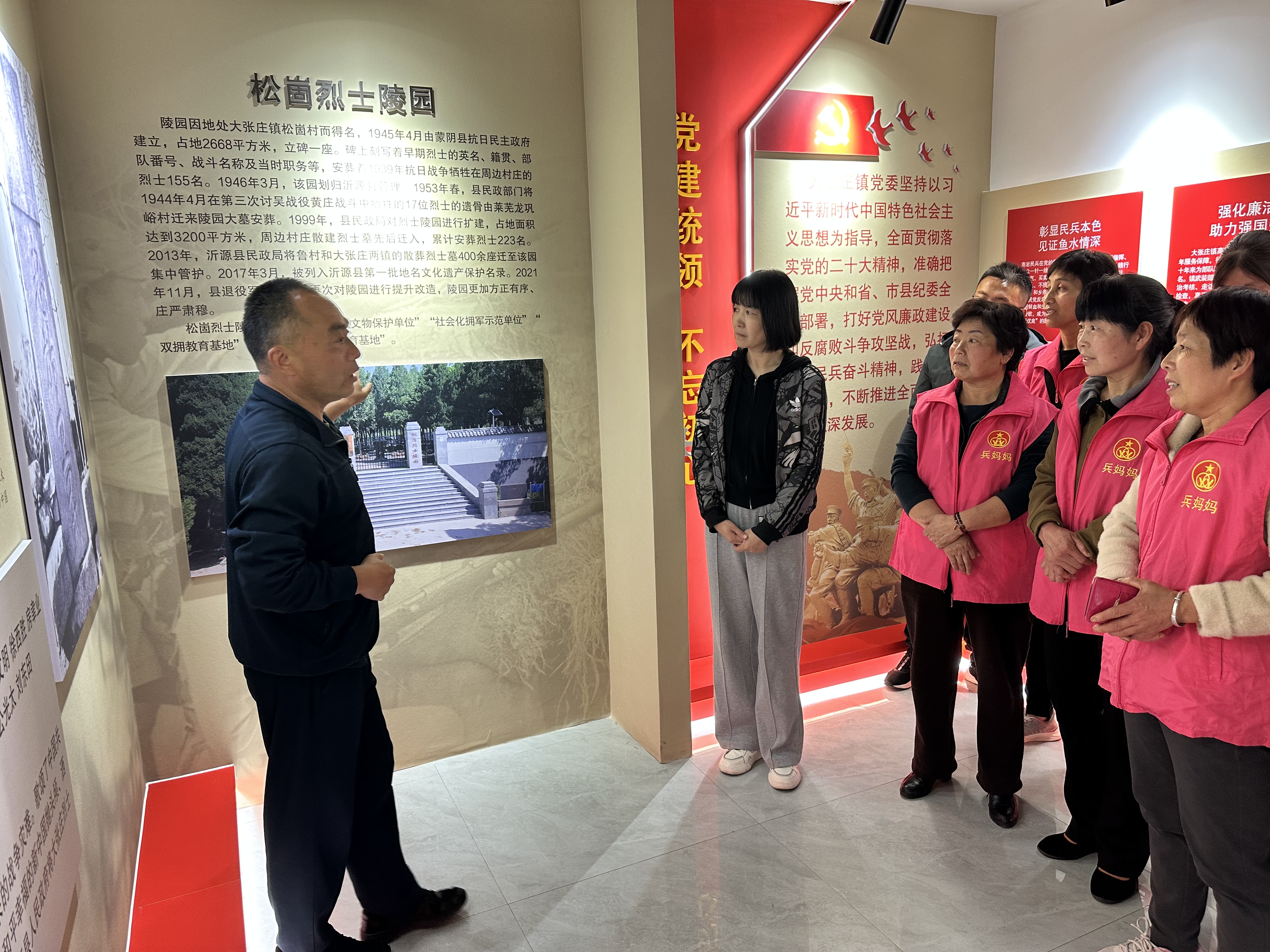为提升兵妈妈思想政治水平,更好地传承双拥文化,近日,淄博市沂源县南麻街道退役军人服务站组织兵妈妈们前往沂源县大张庄镇参观南岩民兵记忆馆,接受历史的熏陶。  纪念馆内,一幅幅生动的历史画卷展现在她们面前,“山东红嫂”张志兰、爆破大王左太传、送子参军于明英等那些曾经浴血奋战的民兵英雄们的事迹,让兵妈妈们深受触动。她们认真聆听讲解员的解说,不时驻足凝视,仿佛在与历史对话,感受着那份沉甸甸的荣耀与责任。