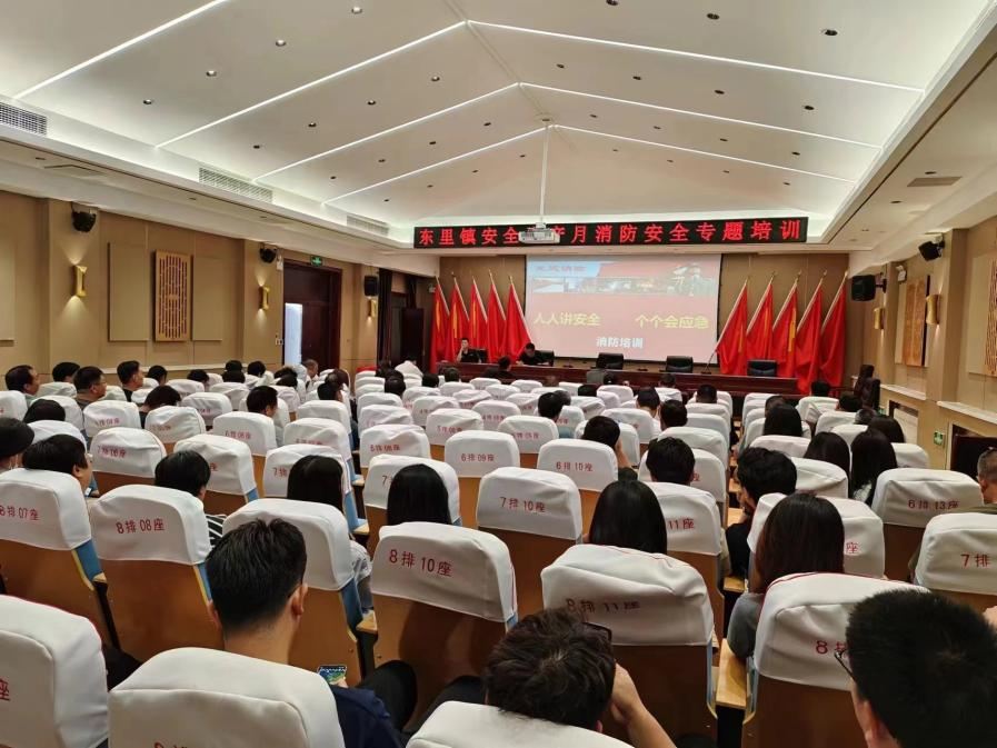 三、组织消防安全主题培训。 东里镇邀请专家,对全镇职工和各企业、加油站代表进行消防安全专题培训。通过培训,受训人员了解掌握火灾扑救及逃生技巧,掌握了灭火器的使用方法,增强了火灾处置及生存能力。