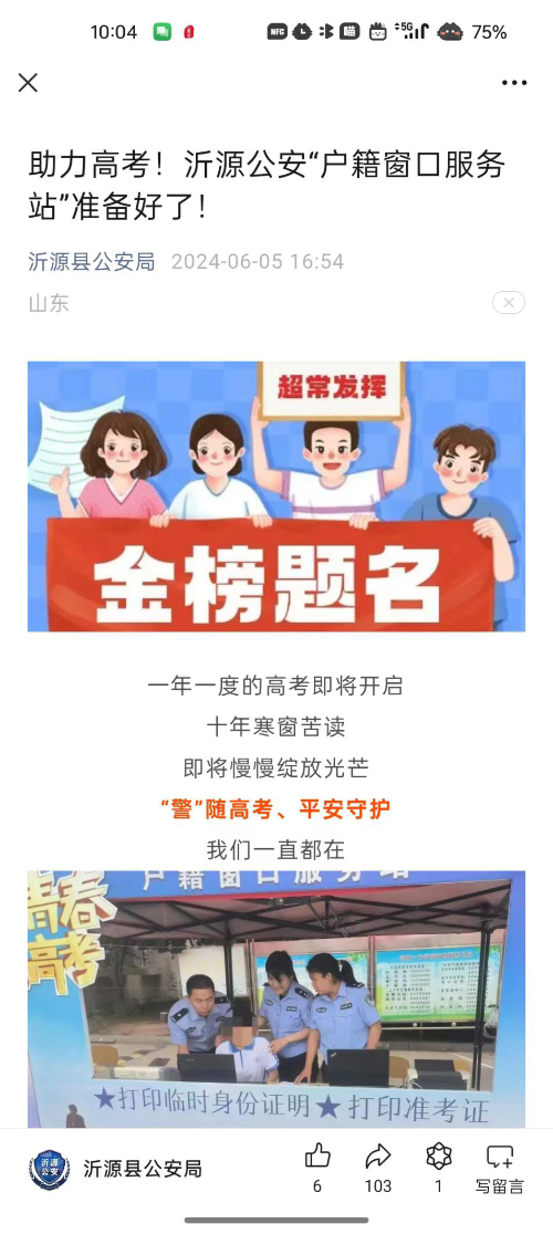 | 沂源县公安局加大政务公开力度 为高考学子保驾护航 | |||