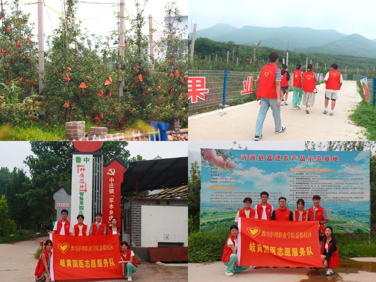 走进田间 助农实践 随着国家对乡村振兴战略的深入实施,农村地区的发展逐渐受到社会各界的广泛关注。作为新时代的大学生,我们肩负着服务国家、服务人民的重任,更应该积极响应国家号召,将所学知识与实践相结合,为农村发展贡献自己的力量。“岐黄国医”志愿服务队志愿者们来到了沂源县富锶农产品示范基地,帮助村民采摘果实、清理田间杂草、灌溉农田,为村民们减轻农作负担。 此次活动,志愿者们真切地感受到了农民劳动的辛苦与丰收的喜悦,不仅增长了农业知识,更坚定了扎根乡村的理想信念。通过深入农村、了解农村、服务农村增强了我们的社会责任感和实践能力,同时为农村的发展注入了新的活力。
