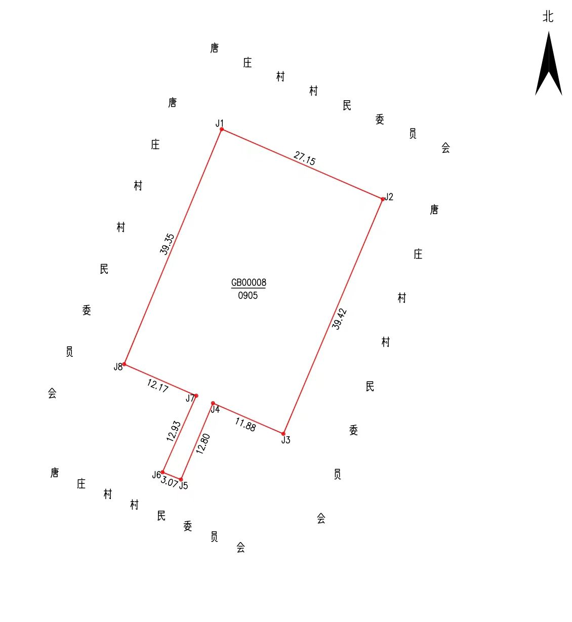 唐庄烈士陵园保护范围:陵园占地面积为1101.56平方米,保护范围为宗地图所示红线内的区域,东侧以J2-J3、J4-J5连线为界;南侧以J3-J4、J5-J6、J7-J8连线为界;西侧以J1-J8连线为界;北侧以J1-J2连线为界。