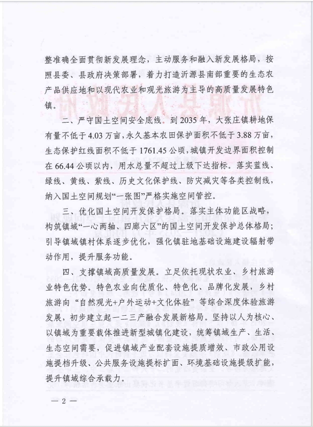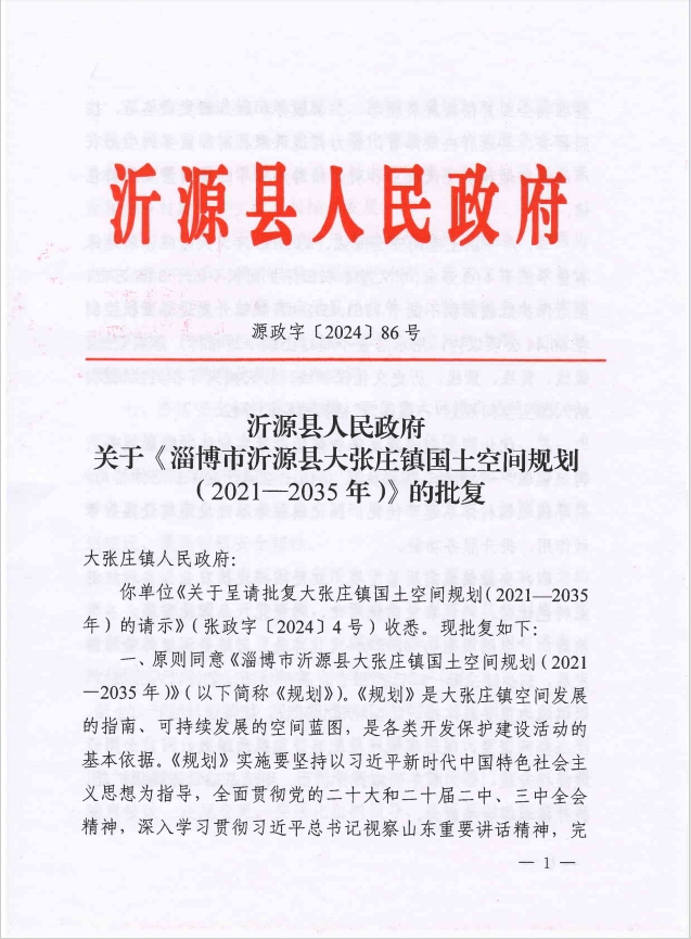 沂源县人民政府关于《淄博市沂源县大张庄镇国土空间规划(2021-2025)》的批复