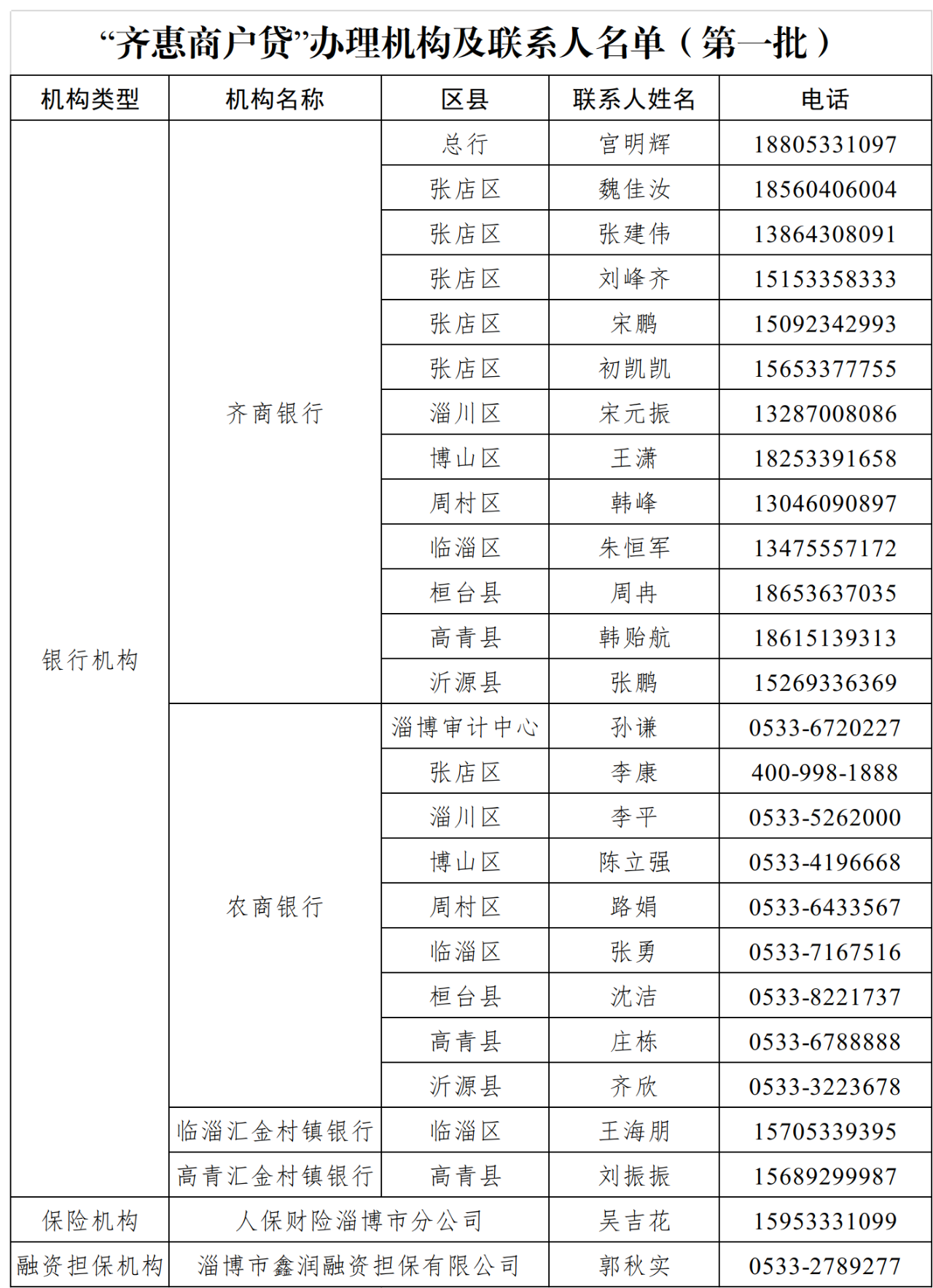 银行机构和保险机构经备案后可开展“齐惠商户贷”业务。第一批办理“齐惠商户贷”的机构包括齐商银行、各区县农商行、临淄汇金村镇银行、高青汇金村镇银行等银行机构,以及人保财险淄博市分公司和淄博市鑫润融资担保公司(详细名单及联系方式附后)。个体工商户办理贷款时,可就近选择银行机构提出申请,同时选择一家保险机构或融资担保机构进行增信。以保险增信方式为例,补贴资金按照“先预拨,后清算”方式下达至保险机构,办理过程中不需要个体工商户预支保险费,极大提升了个体工商户信贷获得便利度,有效帮助解决资金需求的“燃眉之急”。