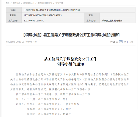 沂源县工业和信息化局政府信息公开指南