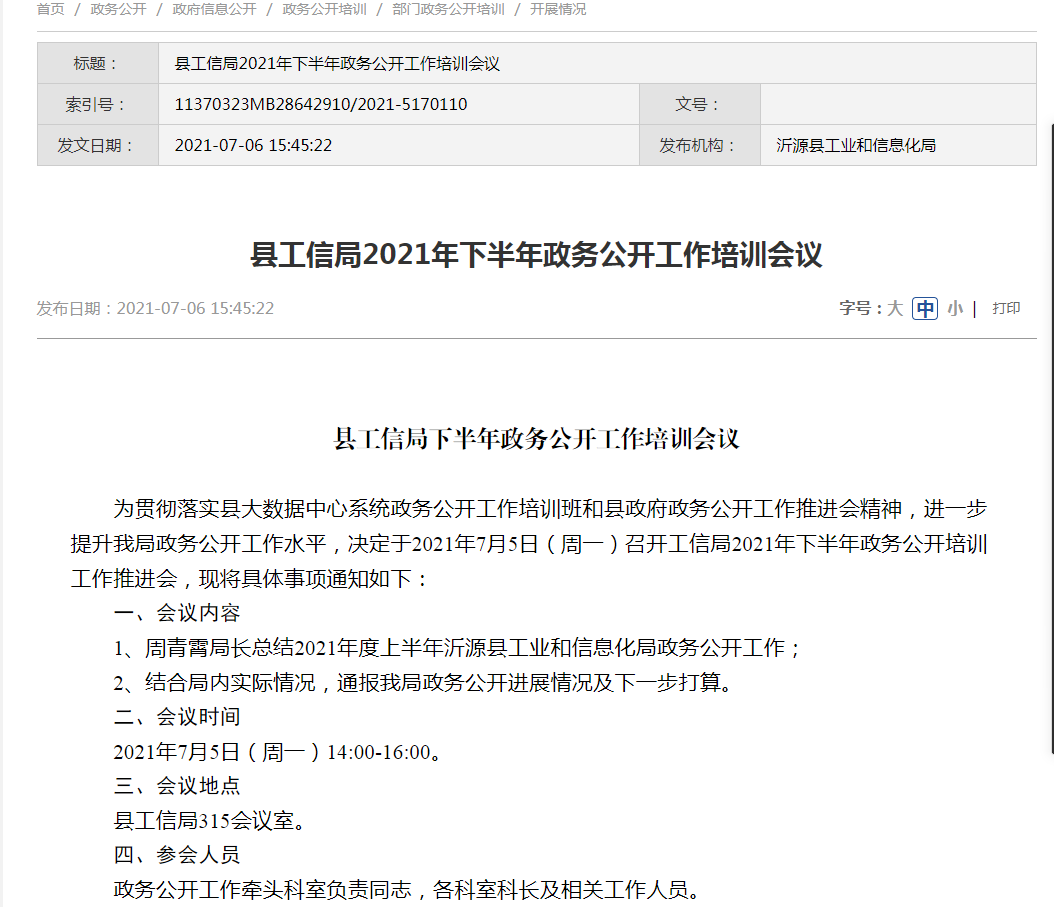 沂源县工业和信息化局政府信息公开指南