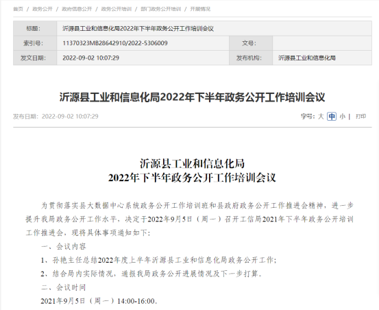沂源县工业和信息化局政府信息公开指南