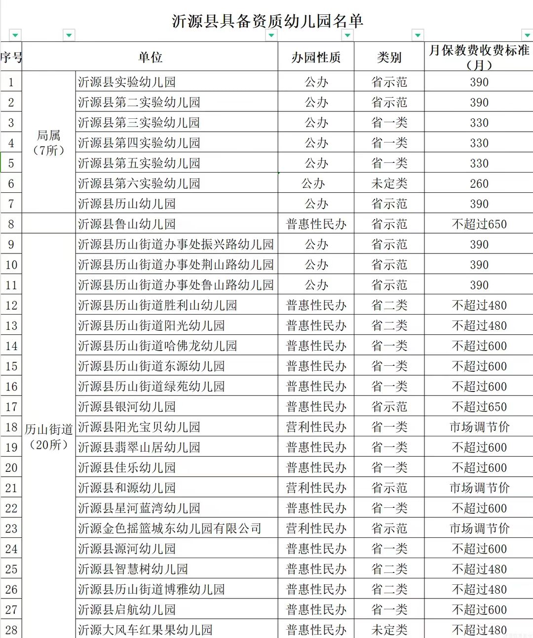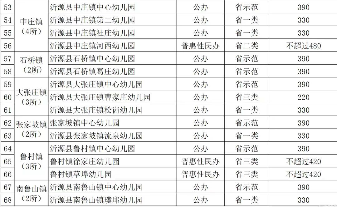 我县具备资质幼儿园名单