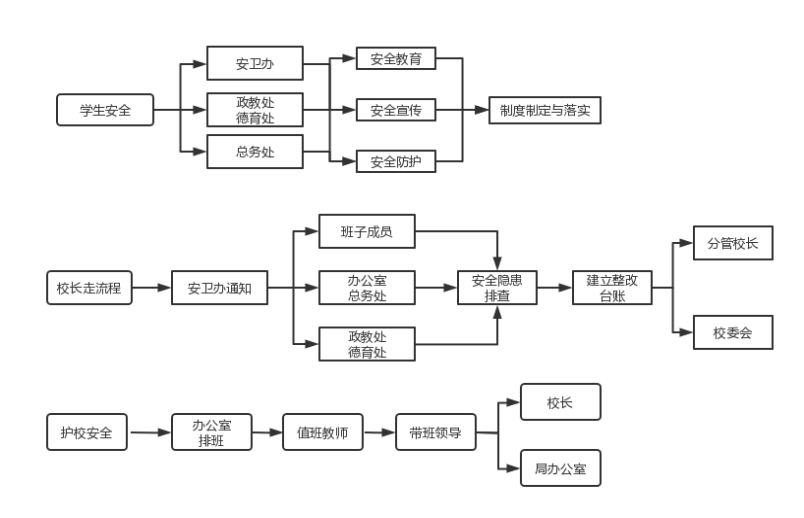3.根据上级要求,依据相关法律法规,不断完善、建立健全学校安全工作管理制度,组织制定各种突发事件应急预案。