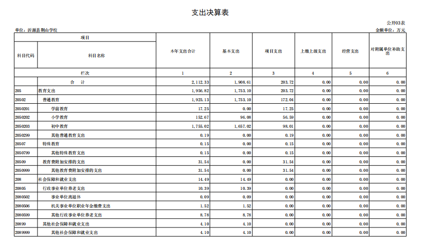 3.“109567沂源县荆山学校_项目义务教育生均经费(初中)”项目绩效自评综述:根据年初设定的绩效目标,项目自评得分为98.48分。全年预算数为115.59万元,执行数为98.01万元,完成预算的84.79%。项目绩效目标完成情况:拨付了义务教育生均经费,保障了学校运转,提高了教育教学质量。发现的主要问题及原因:执行数执行率有待提高。下一步改进措施:积极按照预算进行支付申请核算。
