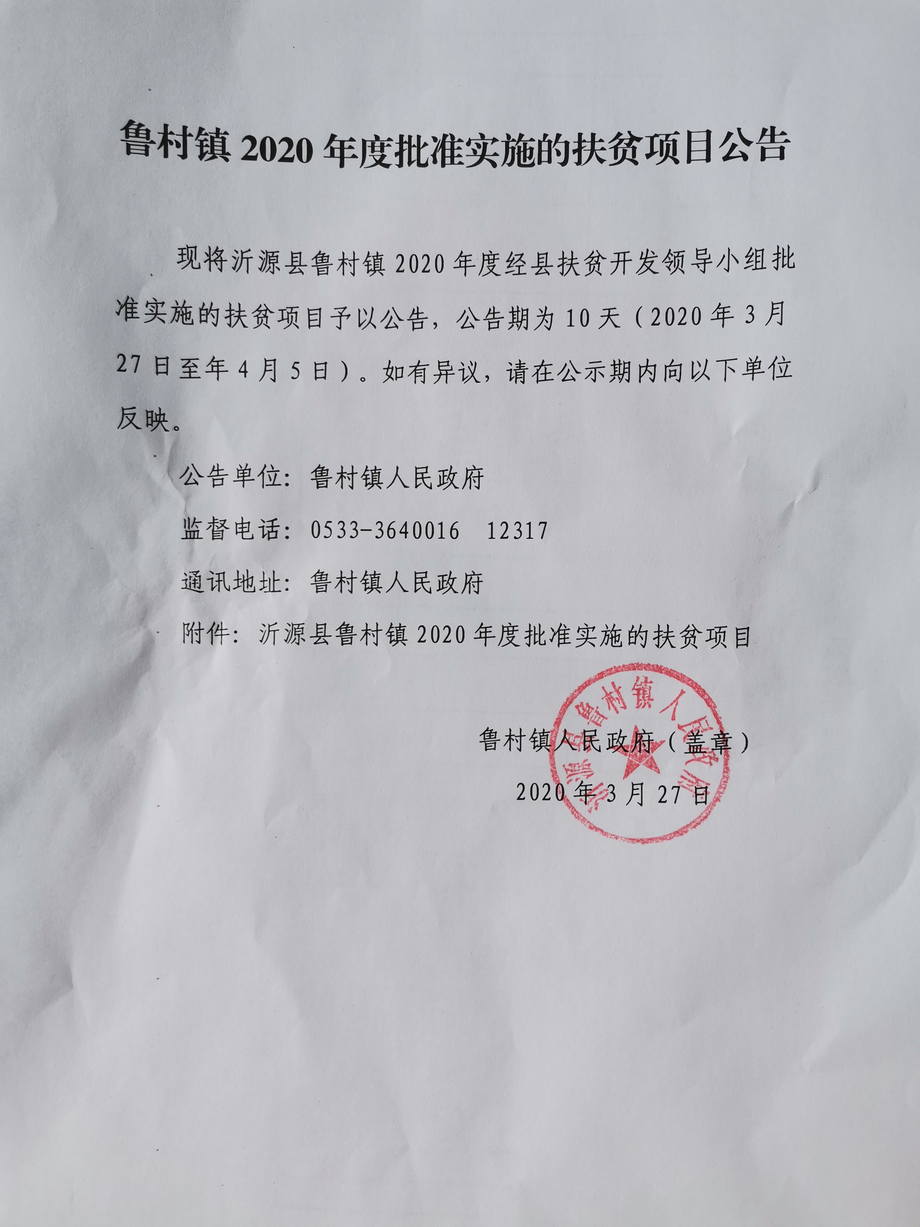 鲁村镇2020年度批准实施的扶贫项目公告