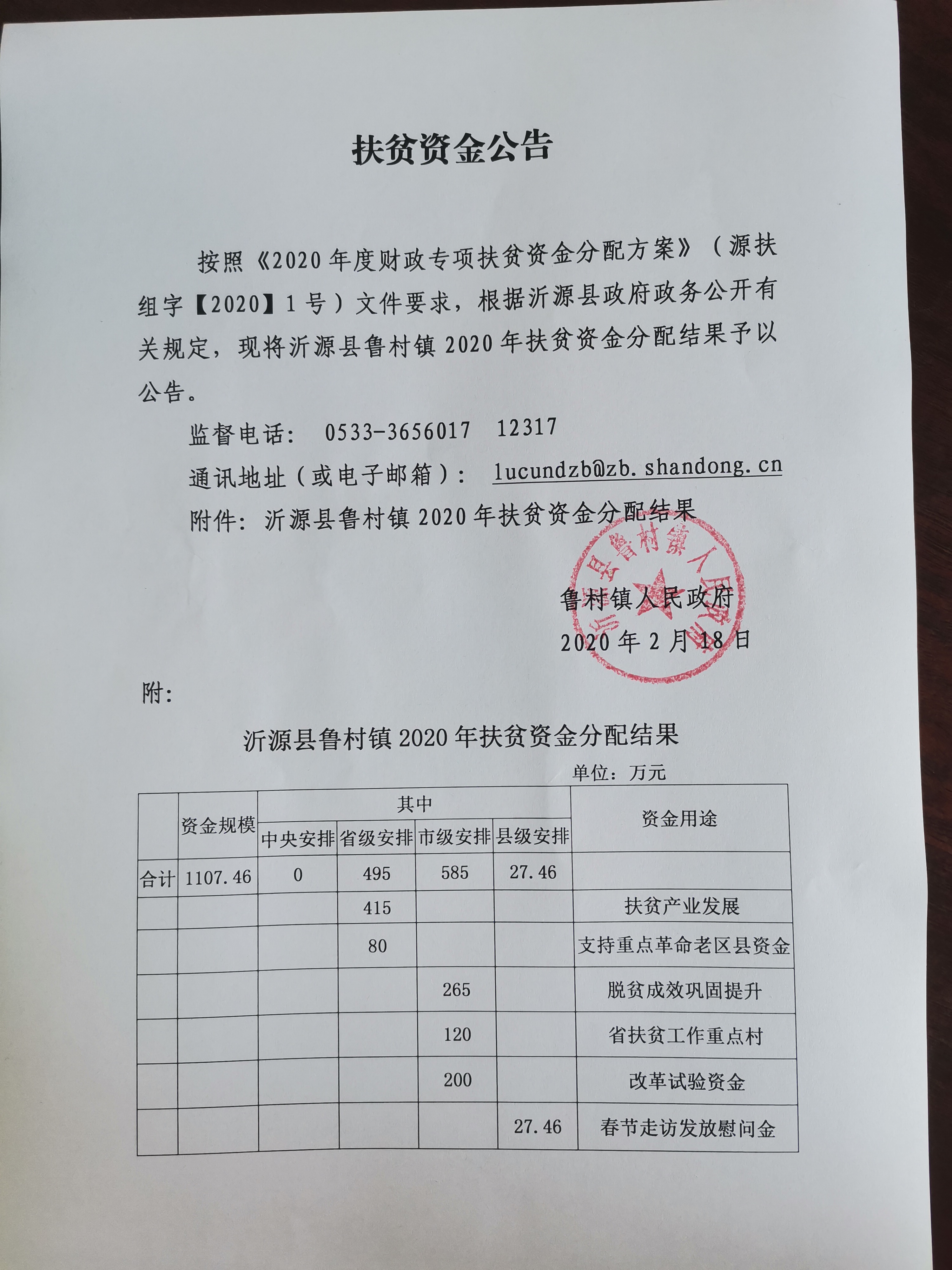 鲁村镇2020年扶贫资金公告