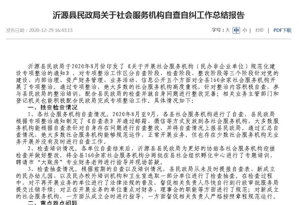 本机关政府信息公开工作机构为:淄博市沂源县民政局