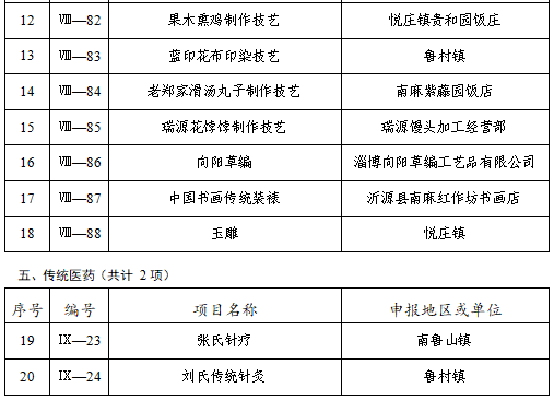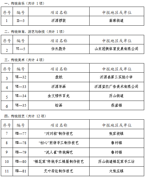 关于公布沂源县第九批非物质文化遗产名录的通知