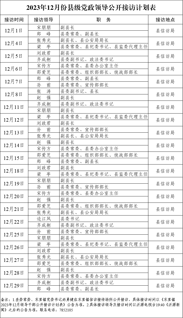 2023年12月份县级党政领导公开接访计划表