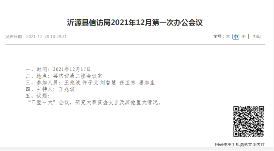 本机关政府信息公开工作工作机构为:沂源县信访局办公室。