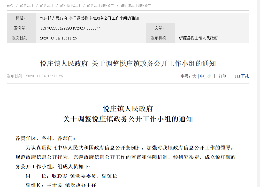 沂源县悦庄镇人民政府2025年度政府信息公开指南(2025年7月修订)