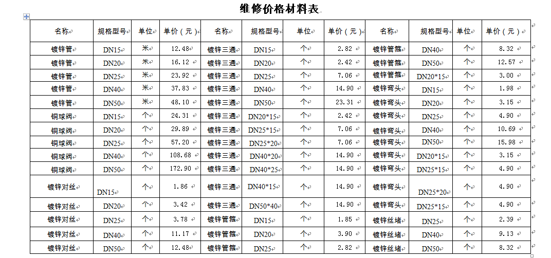 3、工时费:参照淄博市物价局淄价字【2008】57 号文件管道燃气设施维护维修费标准和《山东省安装工程消耗量定额(2016)》执行。