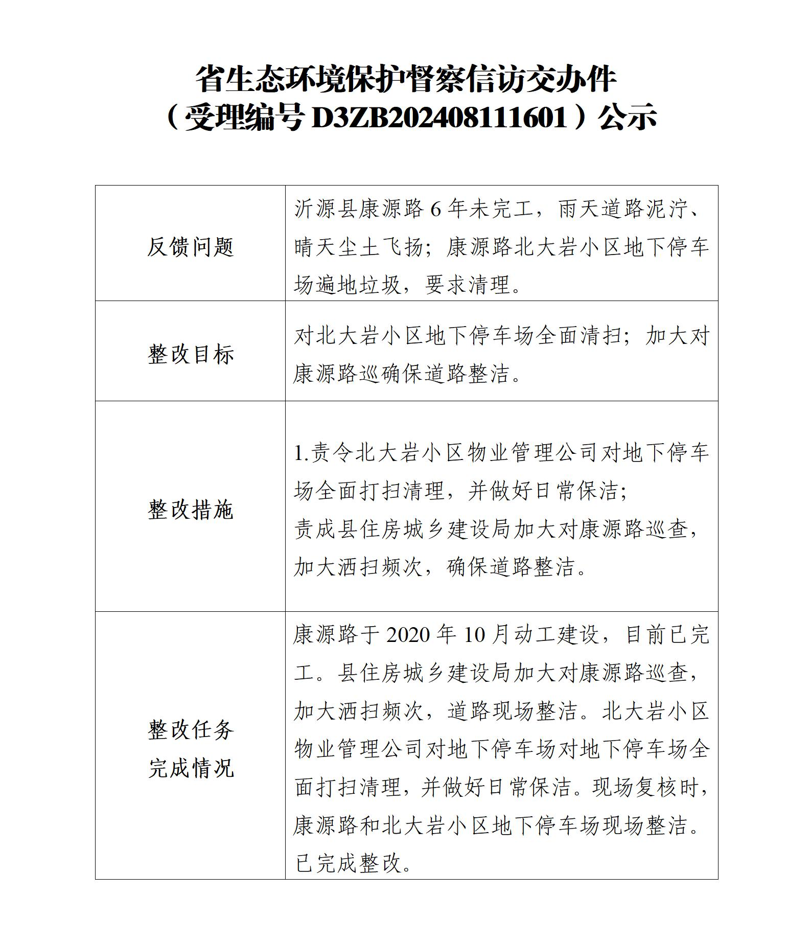 省生态环境保护督察信访交办件(受理编号D3ZB202408111601)公示