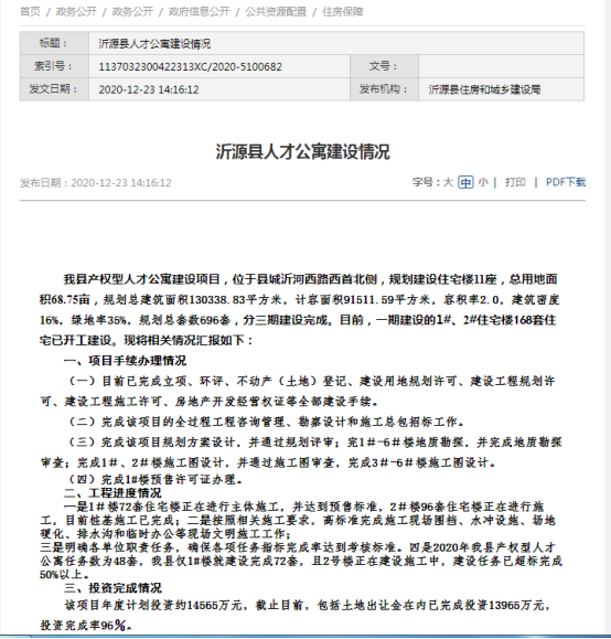 沂源县住房和城乡建设局2019年政府信息公开工作年度报告