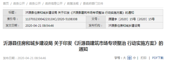 沂源县住房和城乡建设局2019年政府信息公开工作年度报告