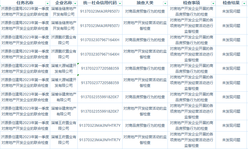 沂源县综合行政执法局2023年“双随机一公开”检查结果公示(五)