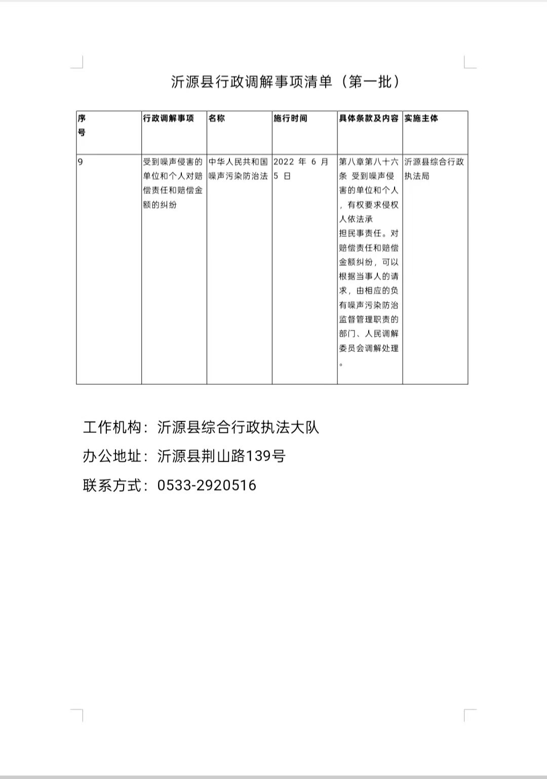 沂源县综合行政执法局 行政调解事项清单.doc