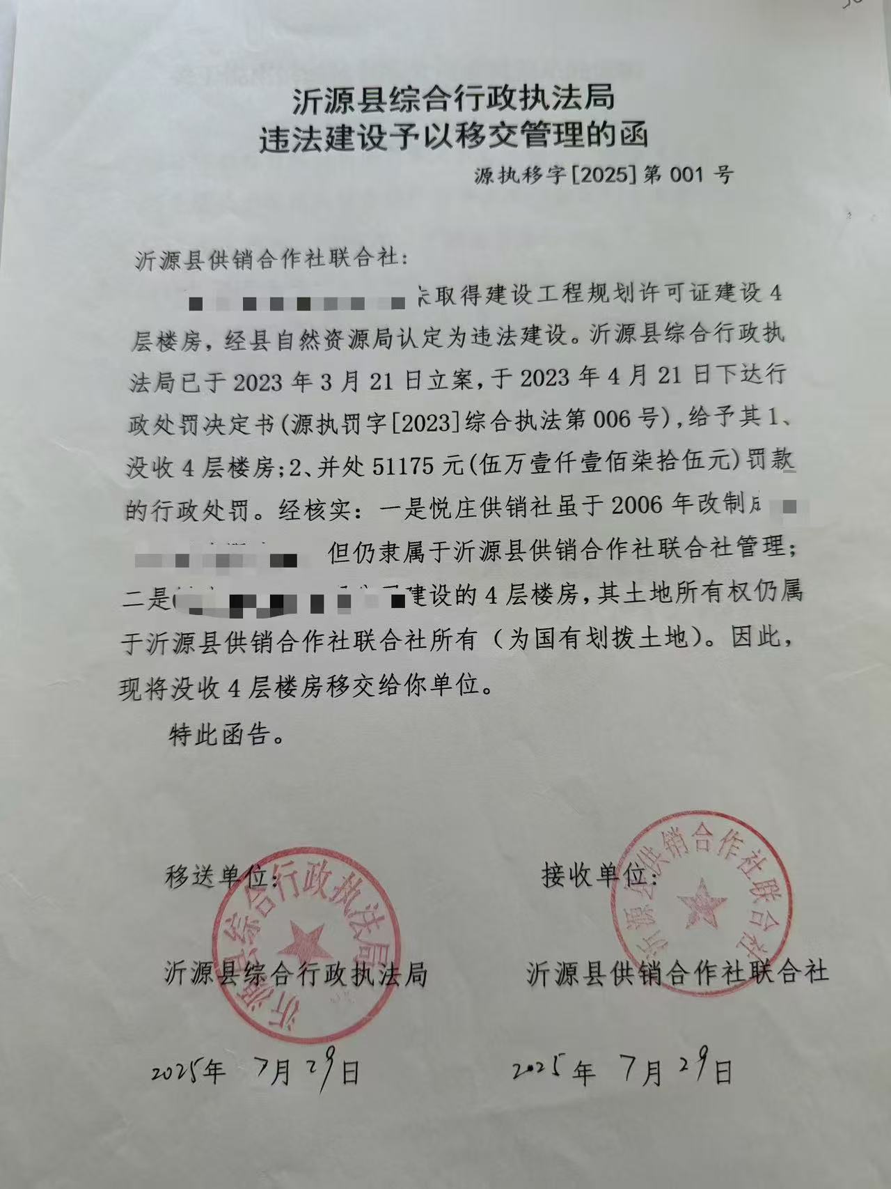 沂源县综合行政执法局2025年第三季度行政执法情况结果公开