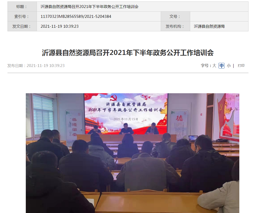 信息公开工作主管部门为:沂源县自然资源局政务公开领导小组办公室