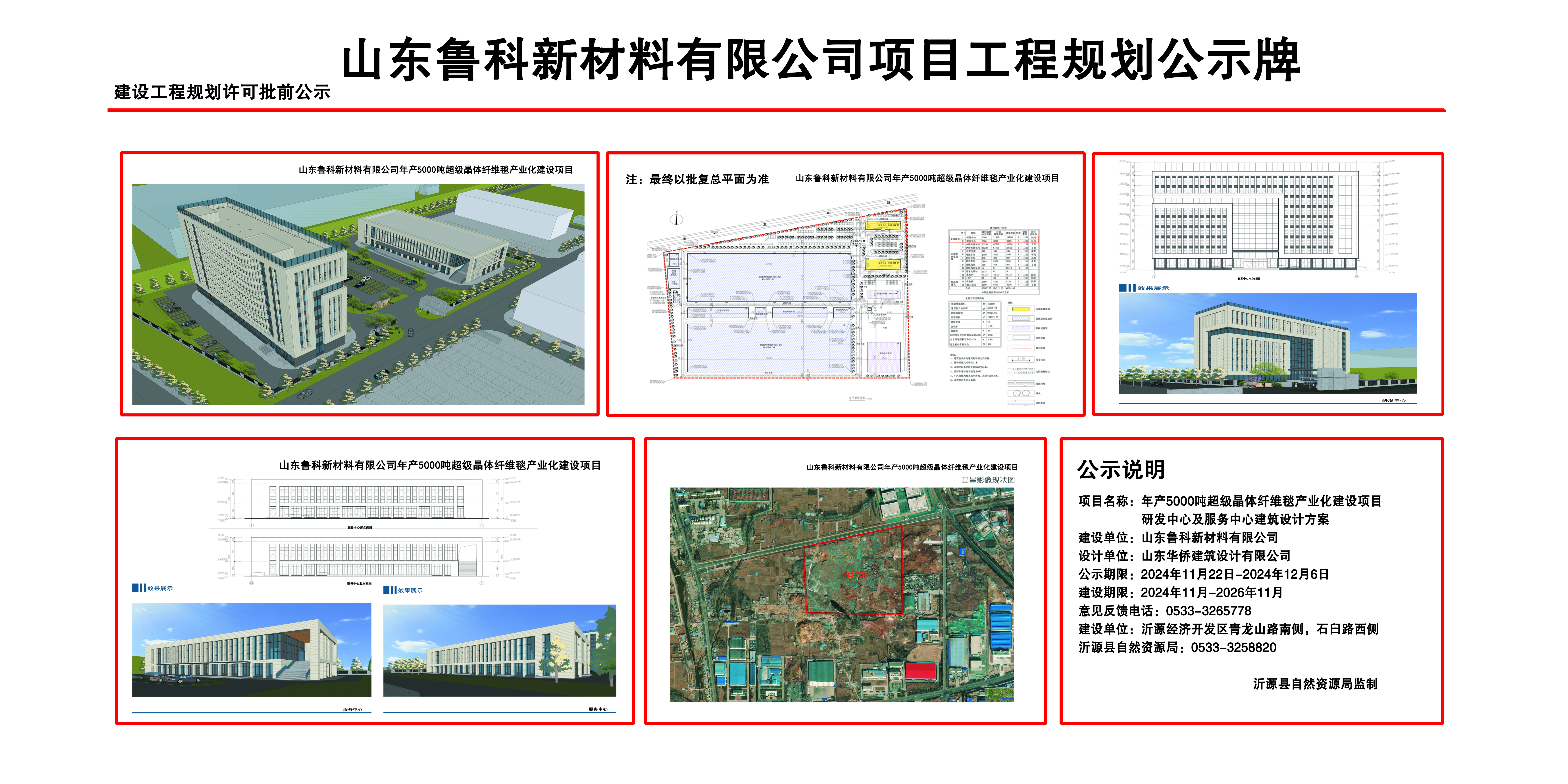 山东鲁科新材料有限公司年产5000吨超级晶体纤维毯产业化建设项目研发中心及服务中心建设工程规划许可批前公示,公示日期:2024年11月22日-2024年12月2日