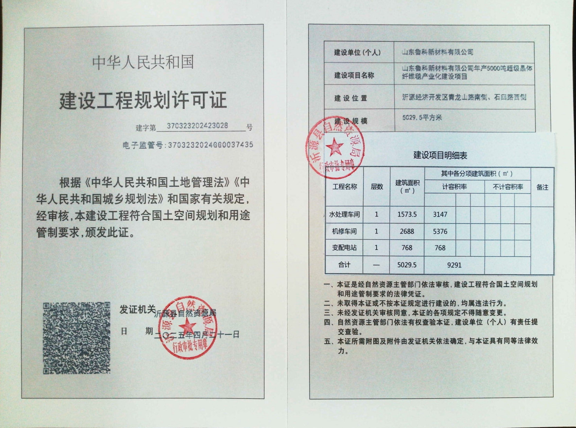 山东鲁科新材料有限公司年产5000吨超级品体纤维毯产业化建设项目建设工程规划许可证