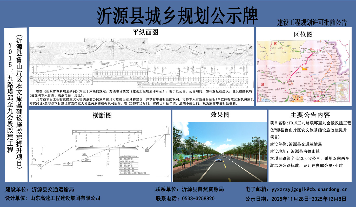 建设工程规划许可批前公示【2025】Y015三九路璞邱至九会段改建工程